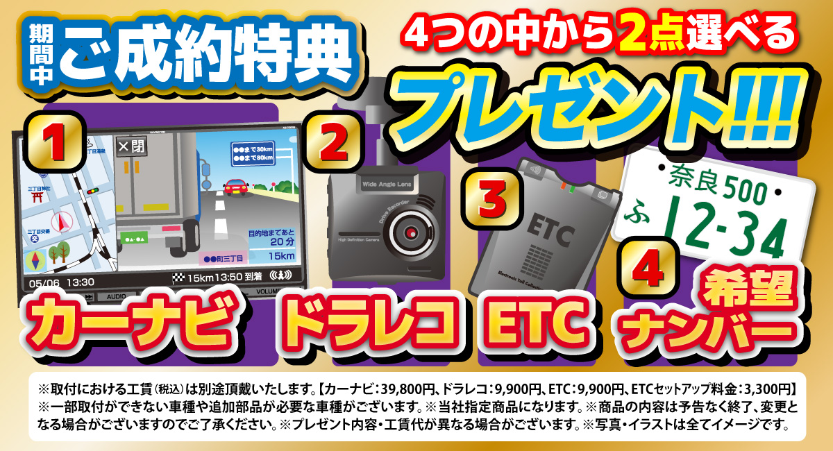 カーナビ+ドラレコ+ETCなど特典満載!